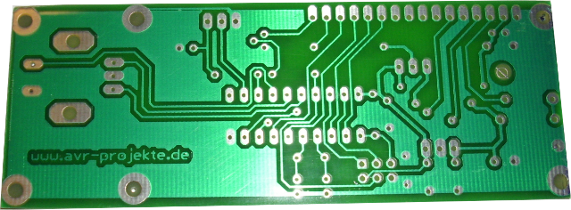 Der 7805 sollte um 90° gebogen eingebaut werden damit der Abstand zum LCD nicht zu hoch wird. Deshalb (wie ich) anstatt JP3 eine Drahtbrücke einbauen oder eine gewinkelte Pfostenleiste verwenden.